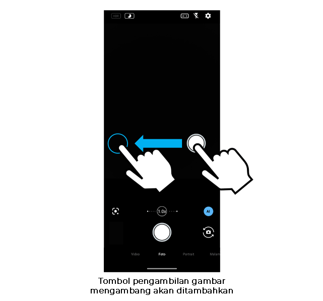 - Tombol shutter dapat dipindahkan ke lokasi yang mudah dijangkau oleh tangan Anda.