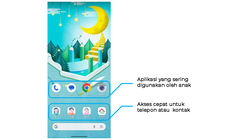 - ・Anda dapat mengatur layar Utama agar lebih mudah digunakan oleh anak Anda.