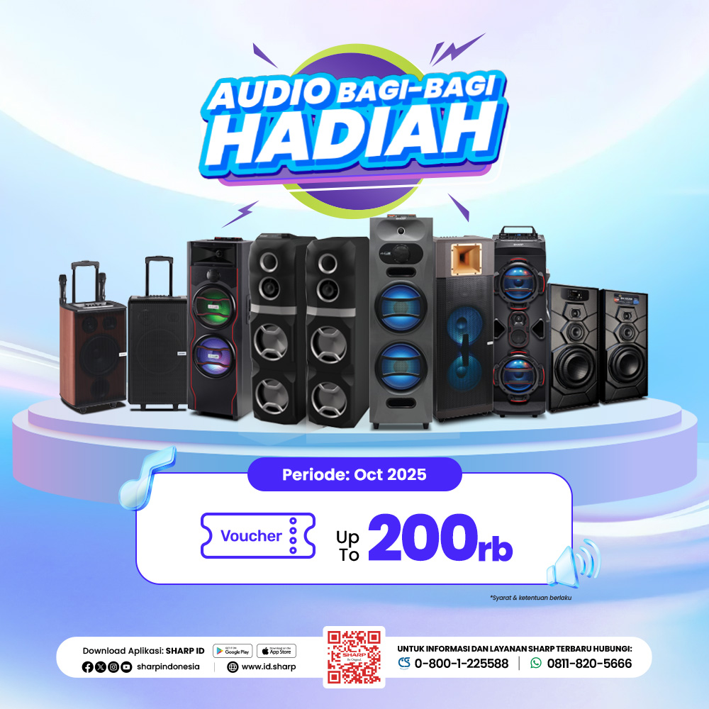 SHARP x Sanrio Characters Collaboration SLD OMOTENASHI AQUOS XLED HU8500 AQUOS TRU HN7000 AQUOS R9 pro AQUOS sense9 Sharp Aquos R9 KONTAK KAMI REGISTRASI GARANSI Lemari Es New Queen Series Promo Find the star Promo Purifier Sharp x IDI KPro Flex Purifier Mini Series AC Garuda Series Promo PCI Promo Audio Bagi - Bagi Hadiah Sharp NEW 2in1 Dehumidifier Kalkulator mesin cuci Sharp Kalkulator AC Sharp Side by Side Refrigerator